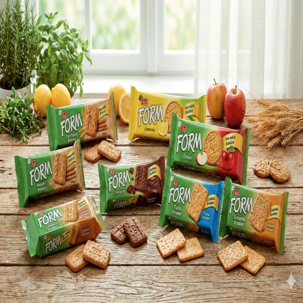 Eti Form serisi, yıllardır "açlığı yatıştırmanın en masum yolu" olarak bilinir. İster o meşhur limonlu kepekli bisküvisinin ferahlatıcı tadını arıyor olun, ister çayınızın yanına eşlik edecek kızarmış kepekli ekmek dilimlerini; çeşitlerimiz raflarımızda her zaman taze. Özellikle tuzlu krizlerine birebir olan çubuk krakerleri veya çikolata kaplı olmasına rağmen hafifliğinden ödün vermeyen çeşitleri, gece atıştırmalıkları için mükemmel birer alternatiftir. Lifli yapısı sayesinde hem sindirimi yormaz hem de sizi uzun süre tok tutarak ozdolabına tekrar tekrar gitmenizi engeller.